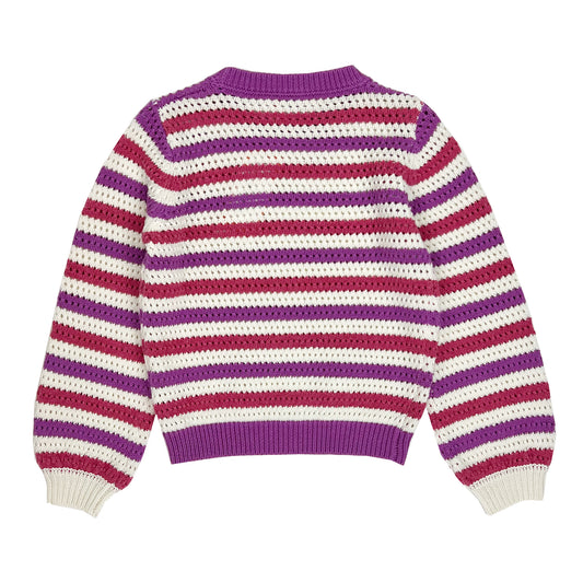 Girl's LS Stripe Openwork Sweater